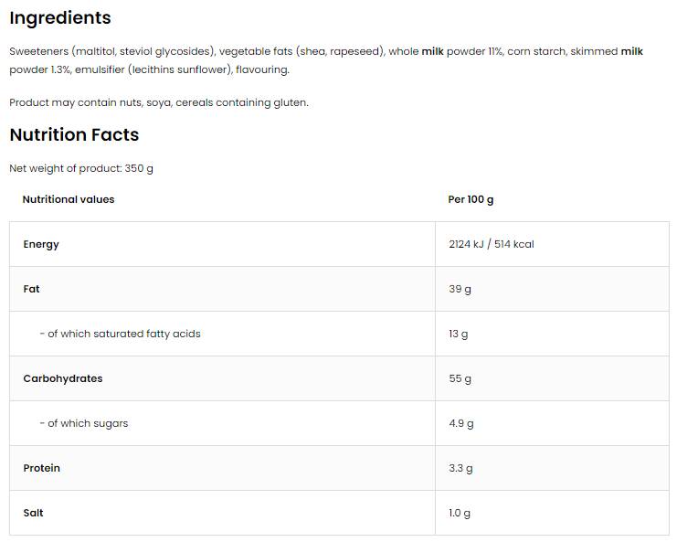 Crameletto/Spreater des protéines/chocolat blanc 350 grammes