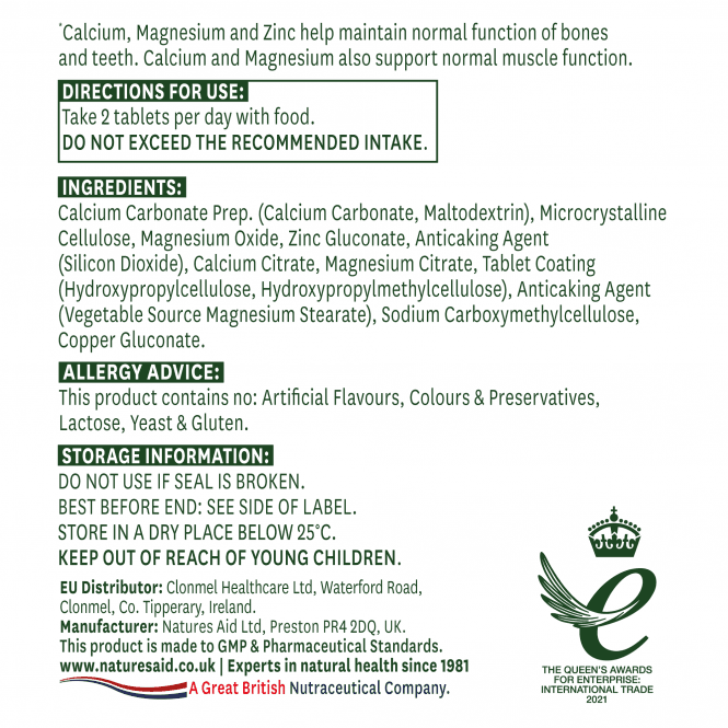 Calcium, Magnésium et Zinc (Calcium, Magnésium + Zinc) Natures Aid:
