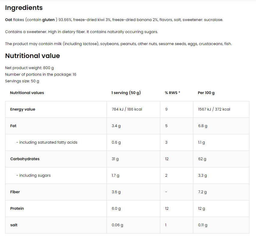 Le porridge Oat My Day est un produit hautement nutritif, riche en fibres et en nutriments bénéfiques, qui offre de nombreux bienfaits pour la santé. Sa teneur élevée en fibres solubles facilite la digestion et contribue à la régulation du tractus gastro-intestinal. De plus, il augmente votre niveau d'énergie, ce qui est particulièrement utile pour un mode de vie actif.