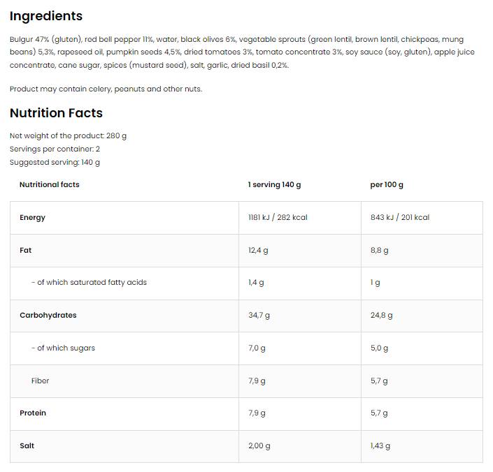Avertissement: Le produit contient des céréales qui peuvent ne pas convenir aux personnes allergiques au gluten.