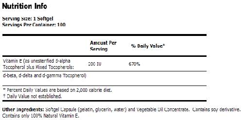 Vitamine E-200 IU D-alpha Tocophérols - 100 capsules de gel