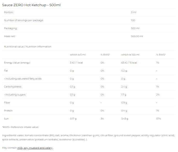Ne manquez pas l'occasion d'ajouter du piquant et de la saveur à vos plats avec Sauce Zero Ketchup piquante - le goût que vous aimez, sans compromis !