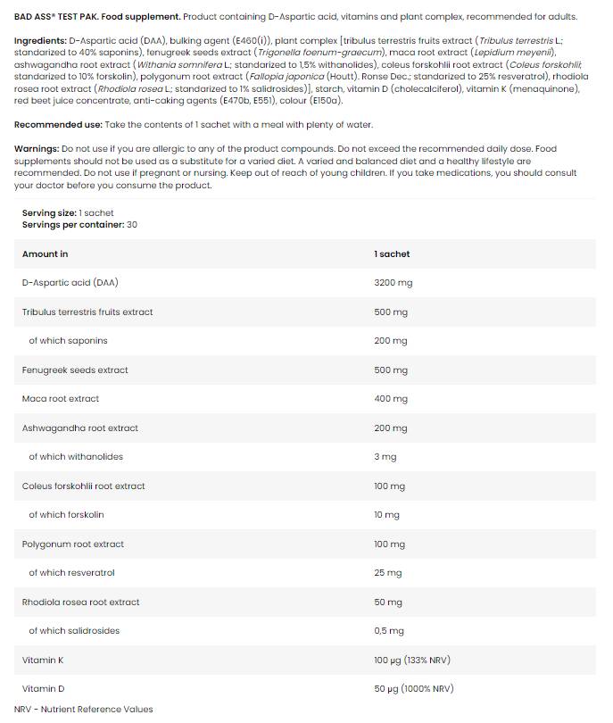 BAD ASS Test Pak | Formule avancée pour booster la testostérone - 30 sachets