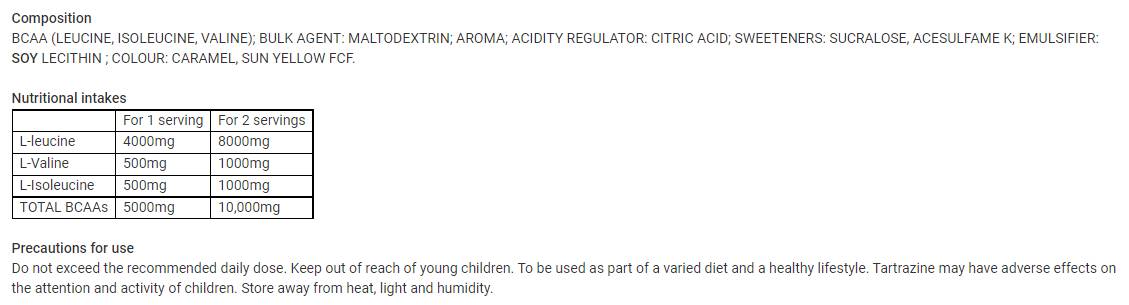 • Rapport idéal : Rapport 8:1:1 de leucine, d'isoleucine et de valine, pour un soutien maximal dans le développement de la masse musculaire.