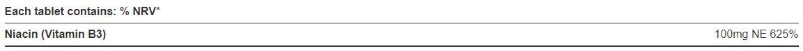 Les comprimés de niacine B3 contribuent au métabolisme énergétique normal, au système nerveux et à une fonction psychologique normale.