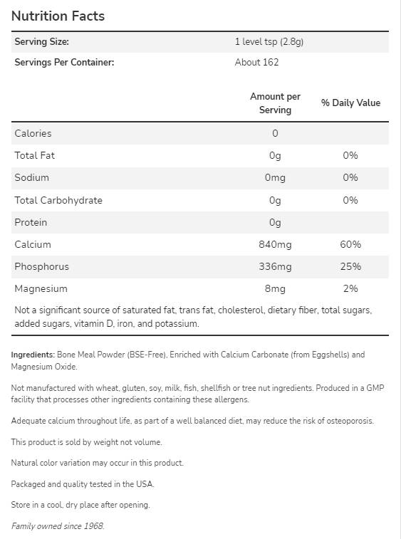 Poudre de farine d'os | Excellente source de calcium - 454 grammes