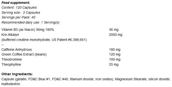 Hyper Kre-Alkalyn PRE/avec caféine - 120 capsules