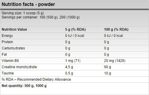 Créatine Xtreme offre également un petit plus : chaque dose contient une quantité suffisante de taurine ajoutée. La taurine améliore l'absorption de la créatine et renforce son effet. C'est pourquoi Créatine Xtreme devrait être votre choix !
