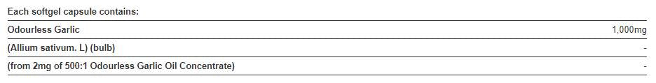 Ail inodore 1000 mg est un complément alimentaire à base d'extrait d'ail, inodore. L'ail possède des propriétés antibactériennes et antifongiques grâce à l'allicine, une substance qui lui confère son odeur piquante. Lorsque la gousse est brisée, l'enzyme alliinase est activée, transformant l'alliine, auparavant inodore, en allicine. Les particules de cette substance interviennent dans des réactions avec les globules rouges (érythrocytes). Cette réaction forme du sulfure d'hydrogène. Elle se caractérise par une odeur désagréable.sanL'ail n'a pas d'odeur particulière, mais il joue un rôle important dans l'interaction entre les cellules. Il réduit la tension des parois des érythrocytes et des cellules qui composent les vaisseaux sanguins. De cette façon, l'ail améliore indirectement la circulation sanguine, ce qui entraîne une baisse de la tension artérielle.