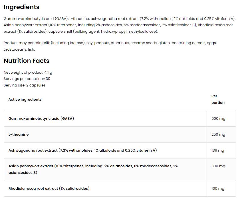 Formule de sérénité de relaxation | avec Gaba, L-théanine et Ashwagandha 60 capsules