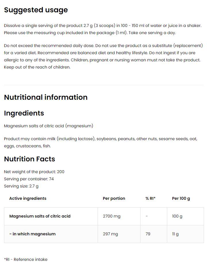 Avertissements : Déconseillé aux personnes souffrant d'insuffisance rénale ou d'hypermagnésémie. Consultez un médecin avant utilisation en cas de problème de santé grave ou de traitement médicamenteux.