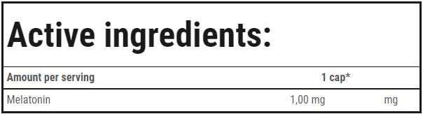 COMPOSITION: maltodextrine ; enveloppe de la capsule (gélatine ; colorant – dioxyde de titane) ; antiagglomérant – sels de magnésium d’acides gras ; mélatonine (0,2%).