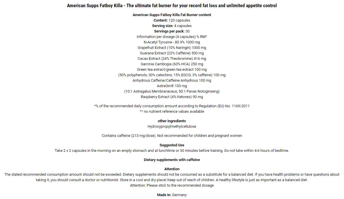 Fatboy Killa® | Hardcore allemand fatburner - 120 capsules