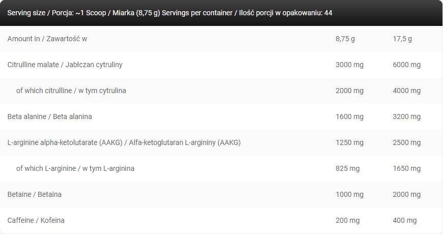 Mode d'emploi : prendre 1 dose diluée dans 100-150 ml d'eau jusqu'à 30 minutes avant l'entraînement à partir de Kevin Levrone Gold Line/Maryland Muscle Machine .