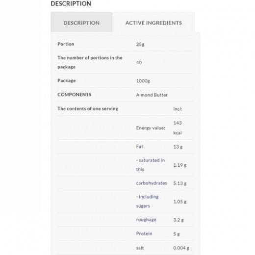 La crème d'amandes onctueuse est idéale pour ceux qui recherchent une alternative saine aux graisses traditionnelles. Riche en acides gras insaturés, elle a un effet positif sur le système cardiovasculaire et réduit le risque de maladies cardiaques. Les amandes sont une source d'antioxydants et de vitamines, contribuant au maintien d'un taux de cholestérol normal.