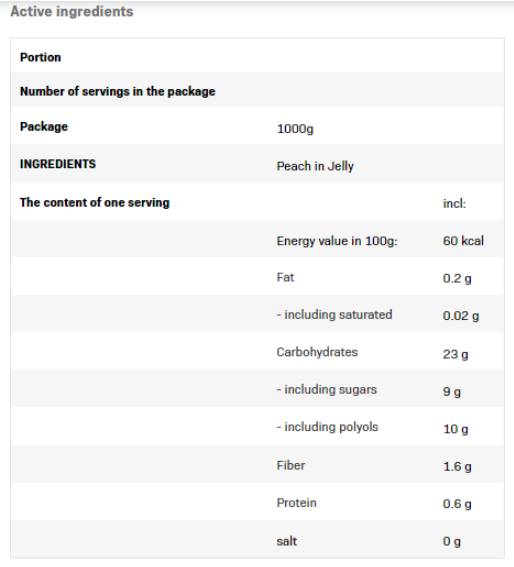 Frulove en gelée à la pêche est la solution idéale pour ceux qui recherchent un complément sain et savoureux à leur alimentation quotidienne. Ce produit apporte à l'organisme l'hydratation nécessaire grâce à sa teneur en eau et à ses ingrédients naturels. De plus, il est riche en vitamines et antioxydants qui renforcent le système immunitaire et aident à protéger les cellules du stress oxydatif.