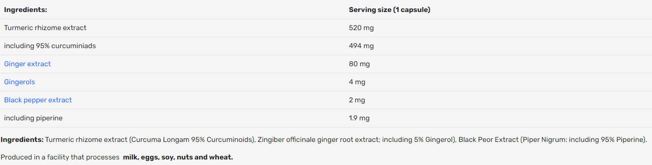 Curcuma avec racine de gingembre | avec 95% de curcuminoïdes et 5% de gingerols - 60 capsules