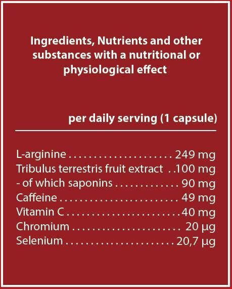 Ingrédients: L-arginine, tribulus terrestris (Tribulus terrestris), caféine, vitamine C, chrome, sélénium