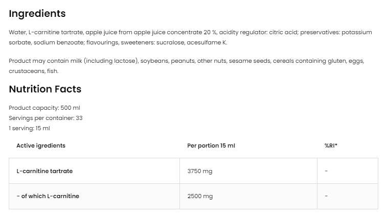 L-Carnitine 125 000 Tartrate Liquide 500 ml