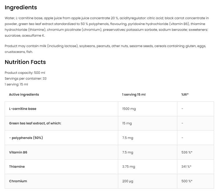 L-Carnitine liquide | + Thé vert et Chrome 500 ml