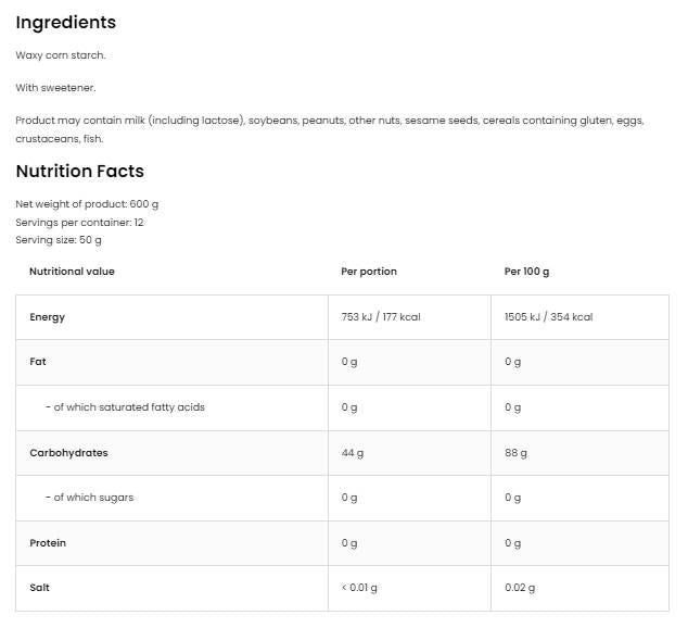 OstroVit Maïs cireux est un complément alimentaire de haute qualité contenant des glucides complexes spécialement sélectionnés sous forme de cire amidon de maïs .