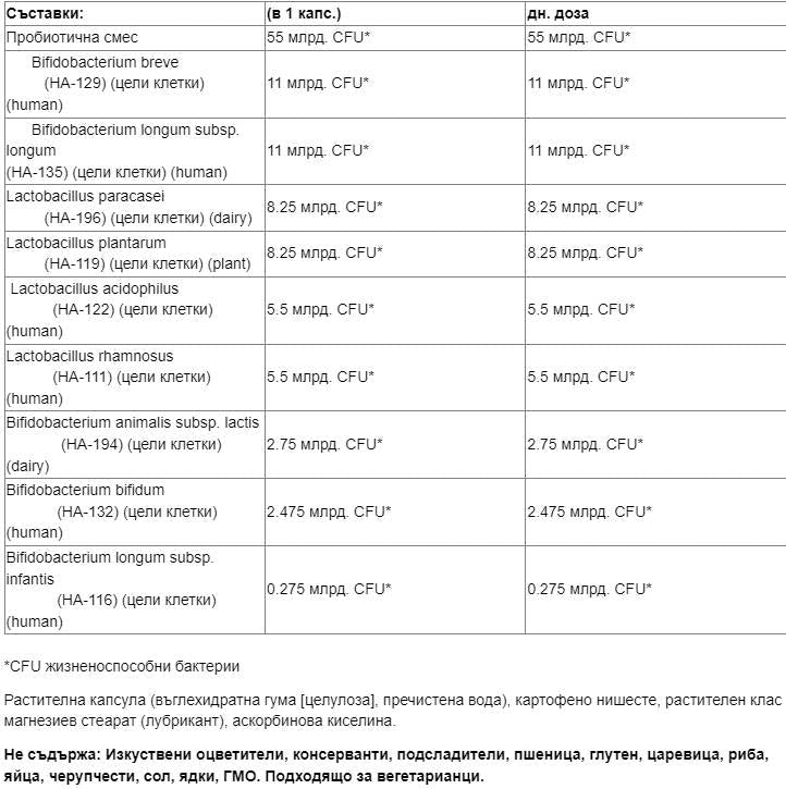 Le probiotique pour soins intensifs est un mélange exclusif de 9 souches stables dans l'estomac, avec une concentration puissante de 55 milliards de cellules actives, qui agissent en synergie pour une activité et une efficacité maximales. Ces souches, composées de bifidobactéries et de lactobacilles, soutiennent de manière ciblée l'intestin grêle et le côlon. Ce complexe restaure les bactéries bénéfiques perdues suite à l'utilisation d'antibiotiques, au stress, à l'alimentation, aux voyages et aux troubles gastro-intestinaux. Cette formule offre une protection significative contre les infections bactériennes, la prolifération de levures et les troubles digestifs. Ce mélange synergique breveté contient : Bifidobacterium breve, Bifidobacterium longum, Lactobacillus paracasei, Lactobacillus plantarum, Lactobacillus acidophilus, Lactobacillus rhamnosus, Bifidobacterium lactis, Bifidobacterium bifidum et Bifidobacterium infantis.