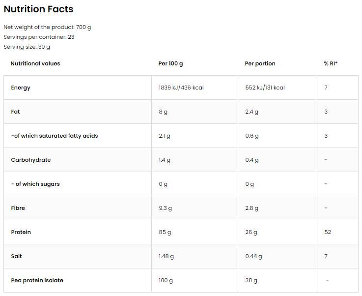 Isolat de protéines de pois | avec 85% de protéines - 480 grammes