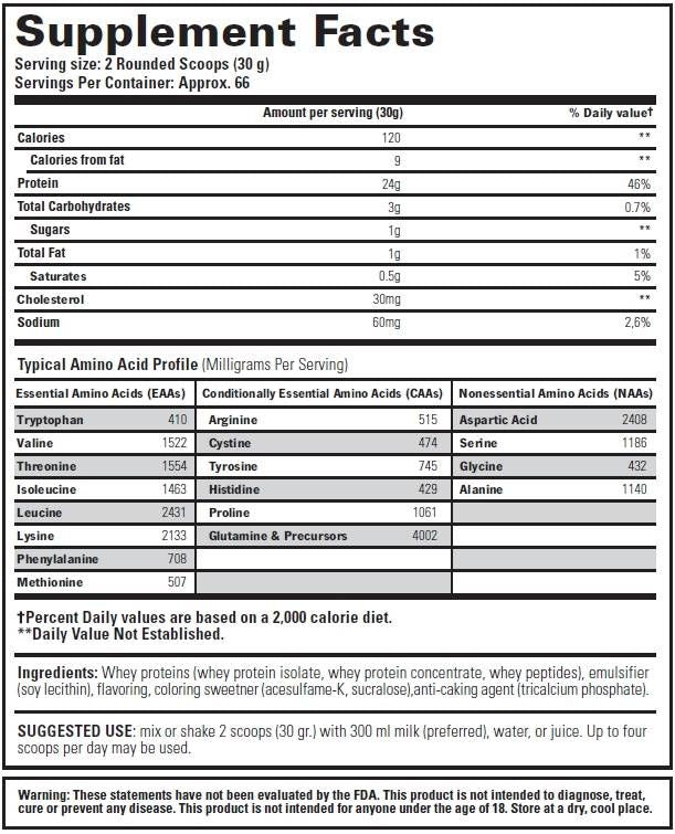 Vous ne retrouverez ces valeurs que dans un produit de haute qualité comme 100% WHEY !