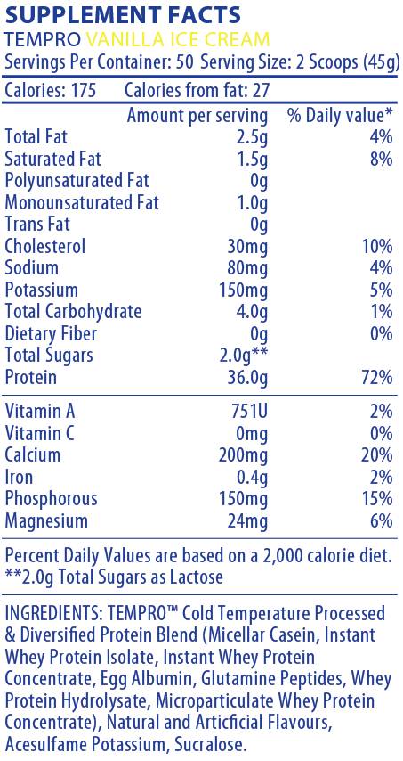 Complexe de lactosérum Tempro est la protéine de lactosérum de la plus haute qualité disponible, contenant plus de 24 g de protéines par portion !