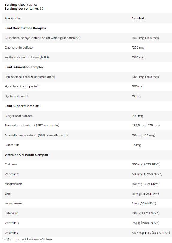 • Glucosamine - un composant naturel du cartilage articulaire qui maintient son élasticité et sa structure.