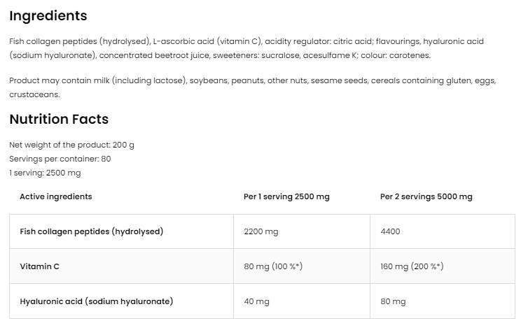Collagène marin et poudre d'acide hyaluronique | avec la vitamine C - 200 ррама