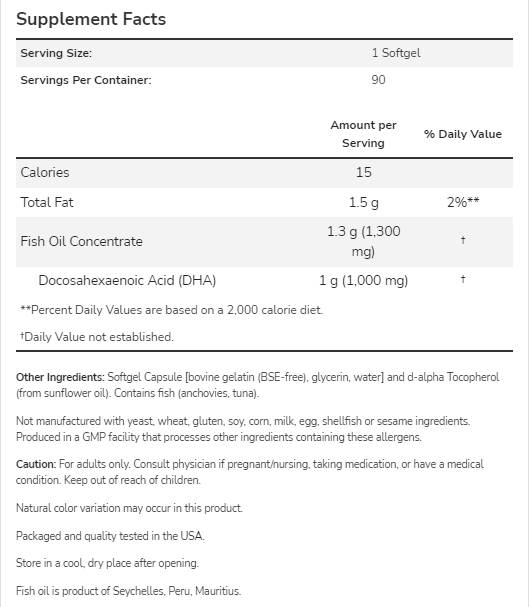DHA - 1000 | Support cérébral - 90 capsules de gel