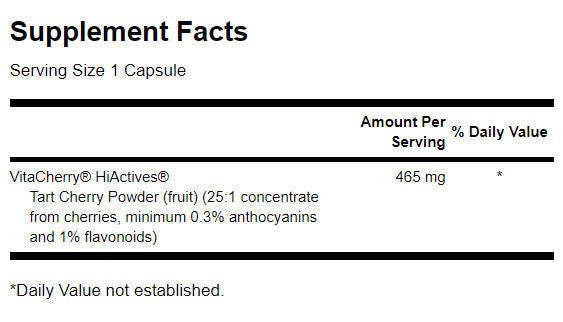 Pour un cœur et des articulations en bonne santé, incluez SwansonIntégrez l'extrait de cerise acidulée hautement concentré à votre alimentation quotidienne. Les flavonoïdes naturels des cerises offrent une puissante protection antioxydante au système cardiovasculaire, mais ce n'est pas tout. En plus de renforcer les structures vitales du collagène dans le tissu conjonctif et de favoriser le métabolisme de l'acide urique, ils sont également essentiels à la santé des articulations. Il existe désormais un nouveau complément alimentaire entièrement naturel qui apporte ces importants flavonoïdes de cerise acidulée sous une forme concentrée et puissante. Nos capsules d'extrait de cerise acidulée hautement concentré vous apporteront tous les bienfaits de ce fruit.
