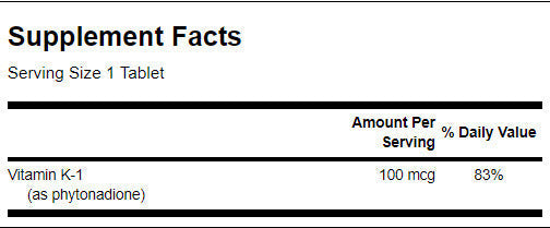 Swanson La vitamine K-1 est un moyen sûr d'apporter à votre corps ce nutriment essentiel. Elle contribue à la santé des os et du sang. Chaque comprimé contient 100 mcg de vitamine K-1.