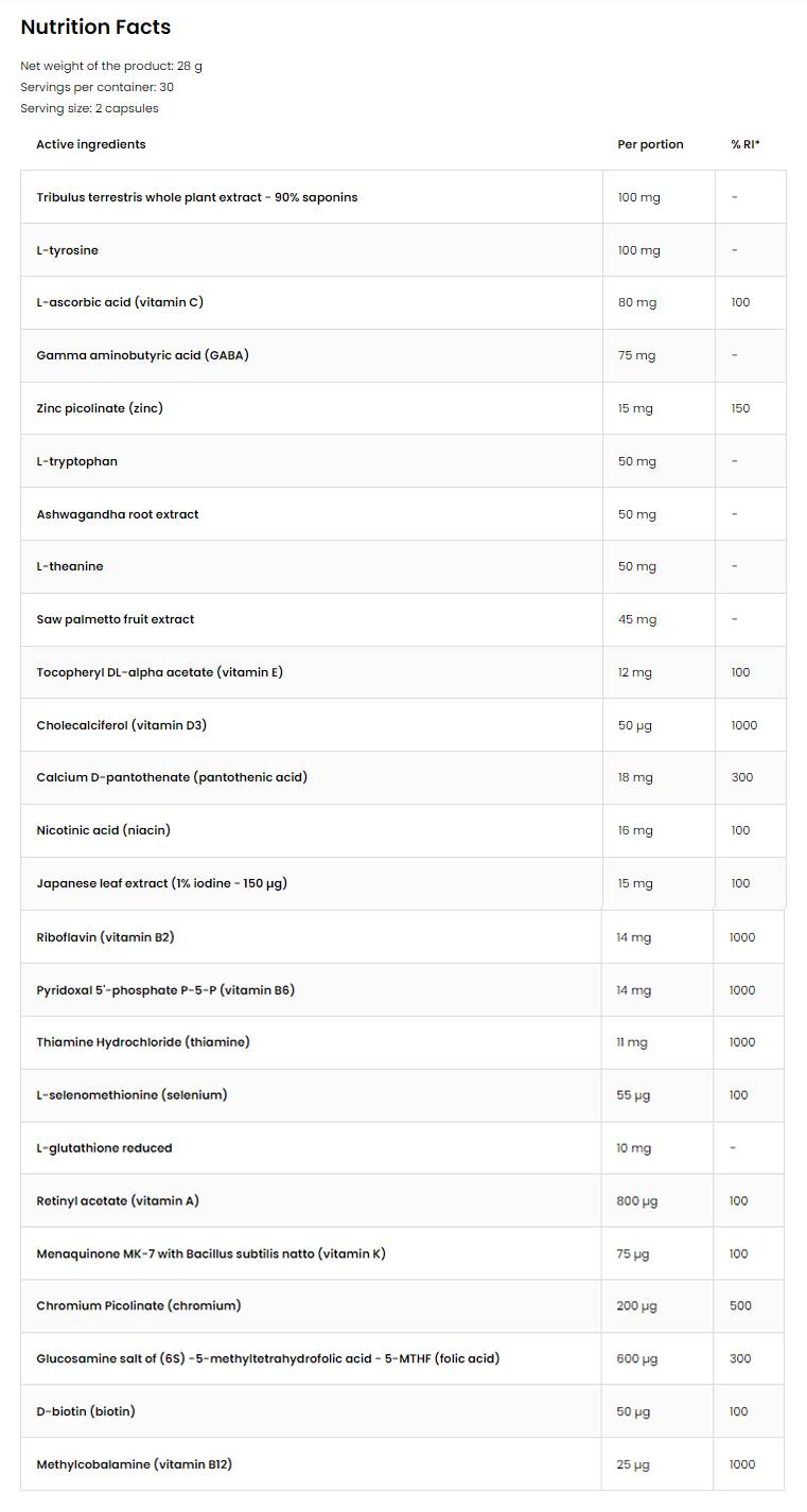 Vitamines pour hommes | à l'ashwagandha, au tribulus et au palmier nain 60 capsules