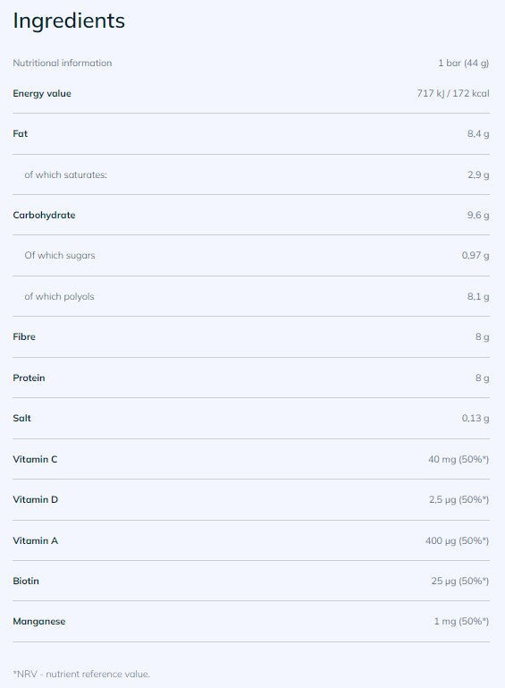 • Avec 8 g de protéines végétales de haute qualité par barre
