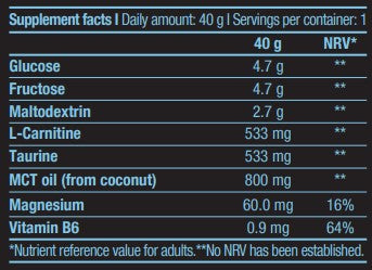 Il a été scientifiquement prouvé que la vitamine B6 et le magnésium jouent un rôle important dans le maintien d'un métabolisme énergétique normal, essentiel pour des performances optimales pendant l'exercice. L'huile MCT (triglycérides à chaîne moyenne) présente dans la composition est absorbée beaucoup plus rapidement que les acides gras à longue chaîne, ce qui en fait une source d'énergie idéale.