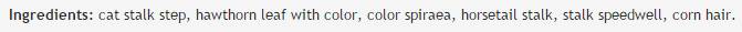 Application: La tisane est efficace contre les inflammations de la prostate, diverses maladies gynécologiques, les fibromes et la mastopathie. Elle est également efficace contre les calculs rénaux et les problèmes circulatoires, l'hypertension artérielle, l'hypercholestérolémie, la gastrite, les troubles hépatiques et les maladies de peau, dont l'eczéma.