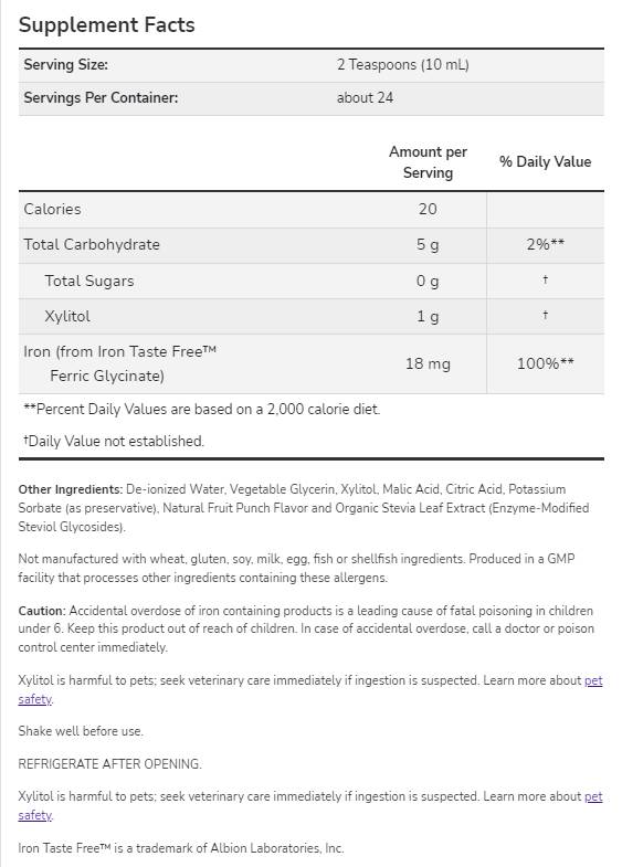 Liquide de fer | de Iron Taste Free ™ Ferric Glycinate - 237 ml