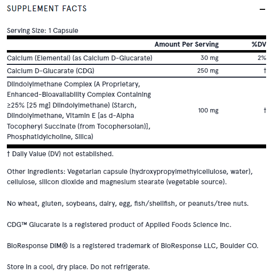 DIM + CDG à partir de Jarrow Formulas est une combinaison de diindolylméthane et de d-glutarate de calcium, deux ingrédients extrêmement importants qui contrôlent les niveaux d'œstrogènes et la réplication cellulaire saine.