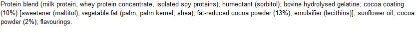• Riche en protéines : Contient 25 g de protéines et seulement 5 g de matières grasses par barre, idéal après l'entraînement.